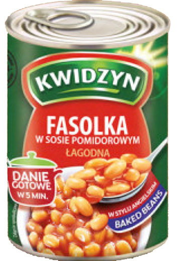 Фасоль белая натуральная в нежном томатном соусе KWIDZYN в жестяной банке с ключом